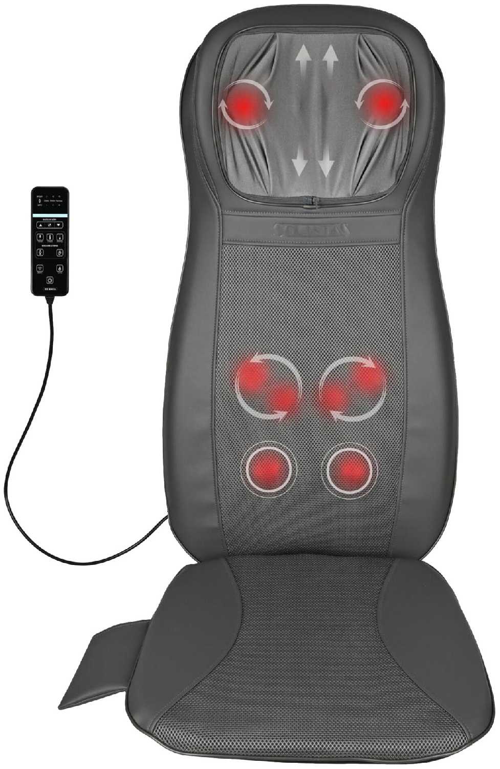 Рекомендую к покупке! Накидка классная. Очень понравилось то, что массажные шарики пультом управления можно отрегулировать по росту каждого из членов семьи отдельно. Управление само по себе многофункциональное, понятное, ничего сложного нет, кармашек для пульта также здесь предусмотрен и удобно расположен. Особенно радует возможность расположения накидки в автомобильном кресле - незаменимая вещь в длительную поездку или в длительную пробку :) Сама накидка сделана качественно. Придраться не к чему. Конечно, со временем ткань начнет трескаться и шелушиться, мы используем простынь при использовании массажёра.