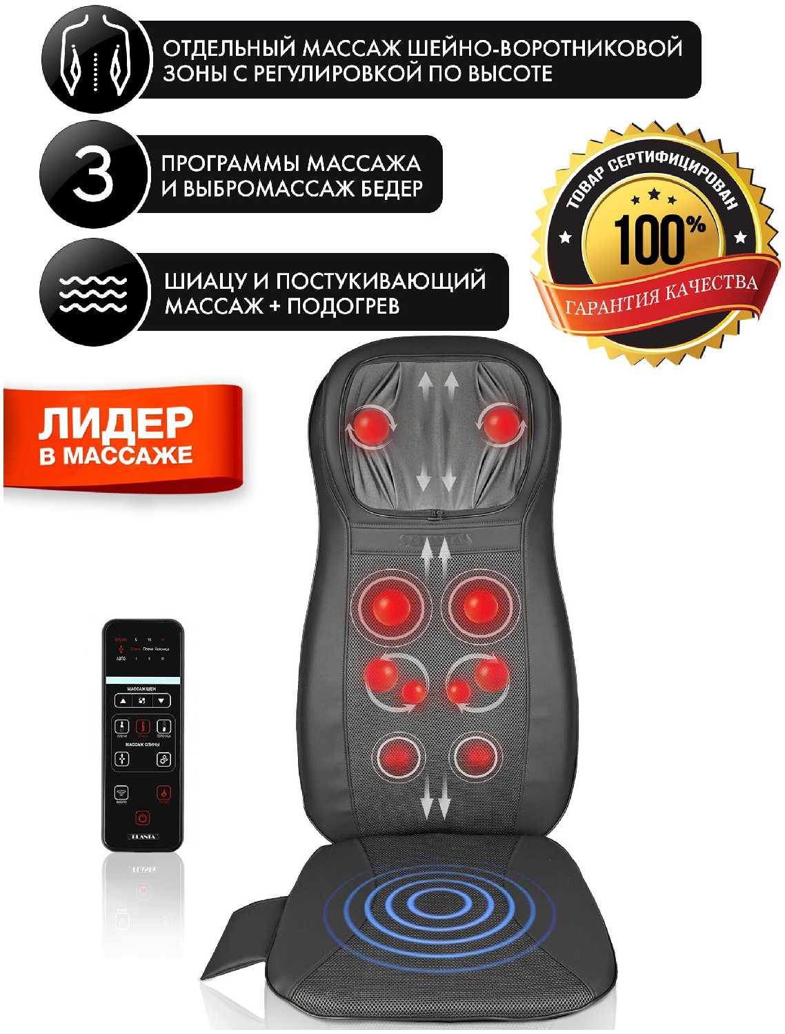 | Зона массажа : | бедра, плечи, поясница, спина, шея, ягодицы |