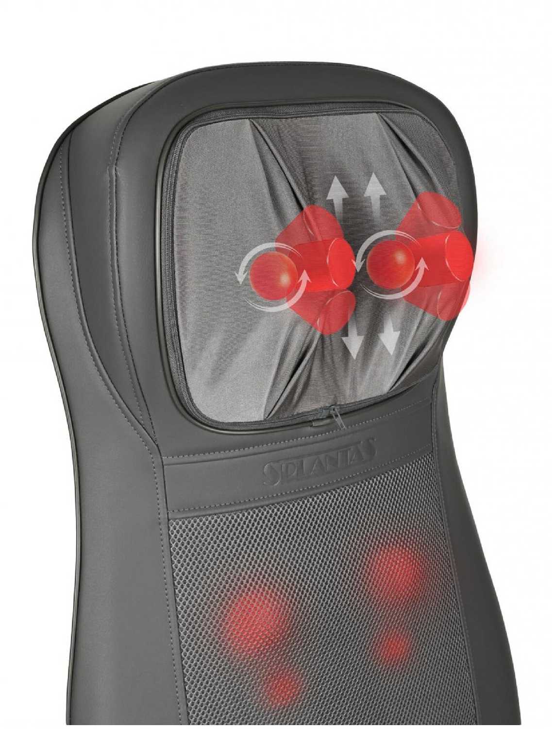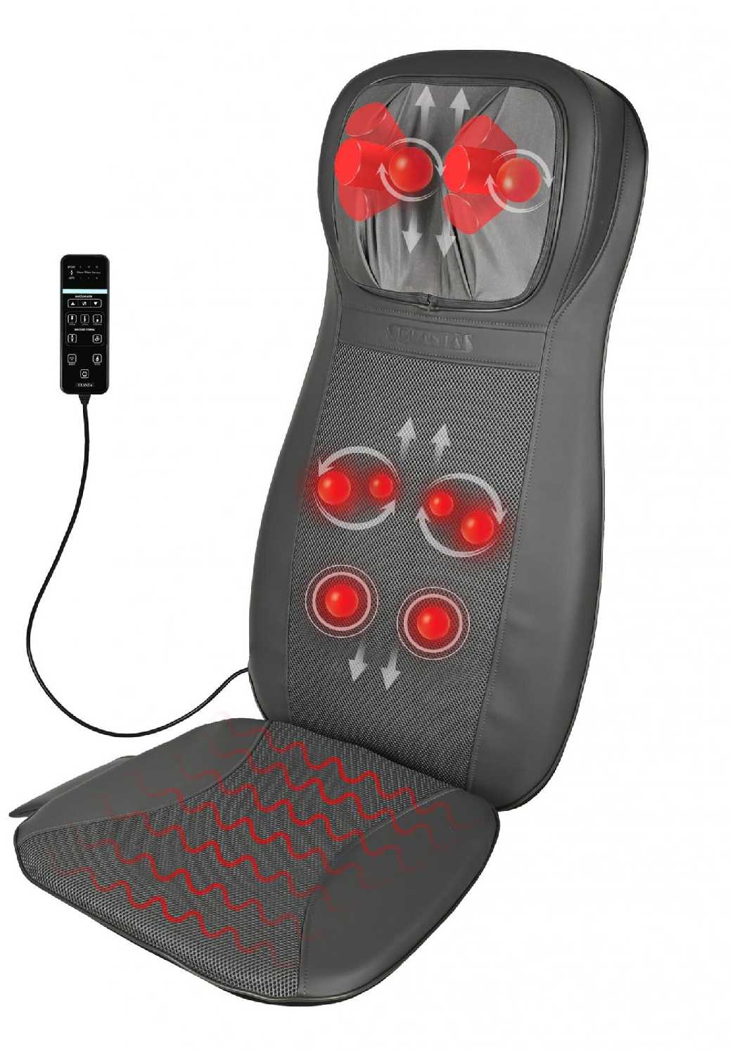 Отличная штука,можно использовать в машине и дома .Регулируется для шейного отдела по высоте,ролики ездят .Отличный массаж,плюс вибрация.Седушка тоже рабочая.
