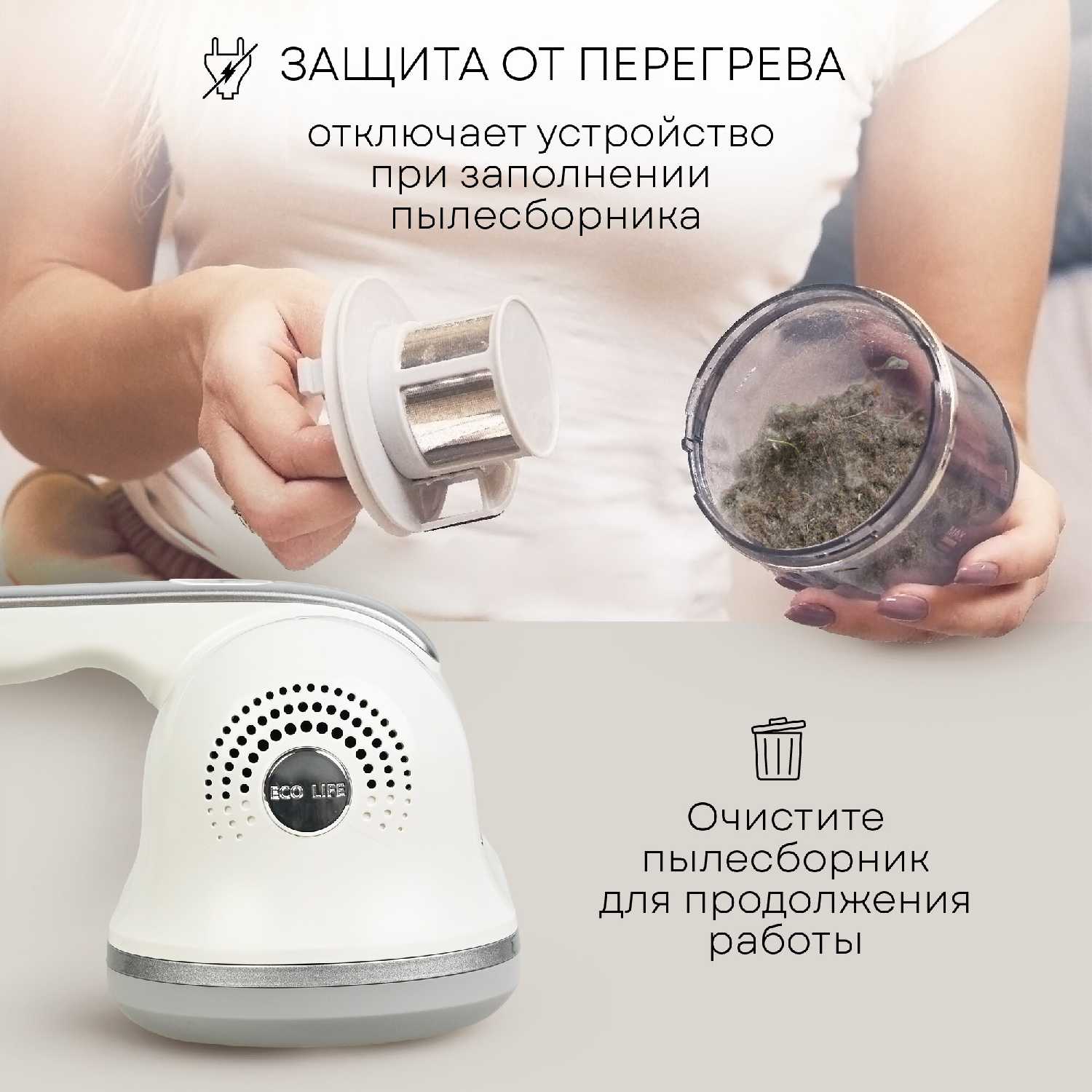 Контейнер вместительный, собирает большое количество пыли, шерсти и мусора даже после поверхностной уборки, что подтверждается отзывами о неожиданно заполненных резервуарах. Для очистки достаточно извлечь его, вытряхнуть содержимое и промыть под краном без сложных манипуляций. Пользователи ценят простоту обслуживания и гигиеничность системы. -