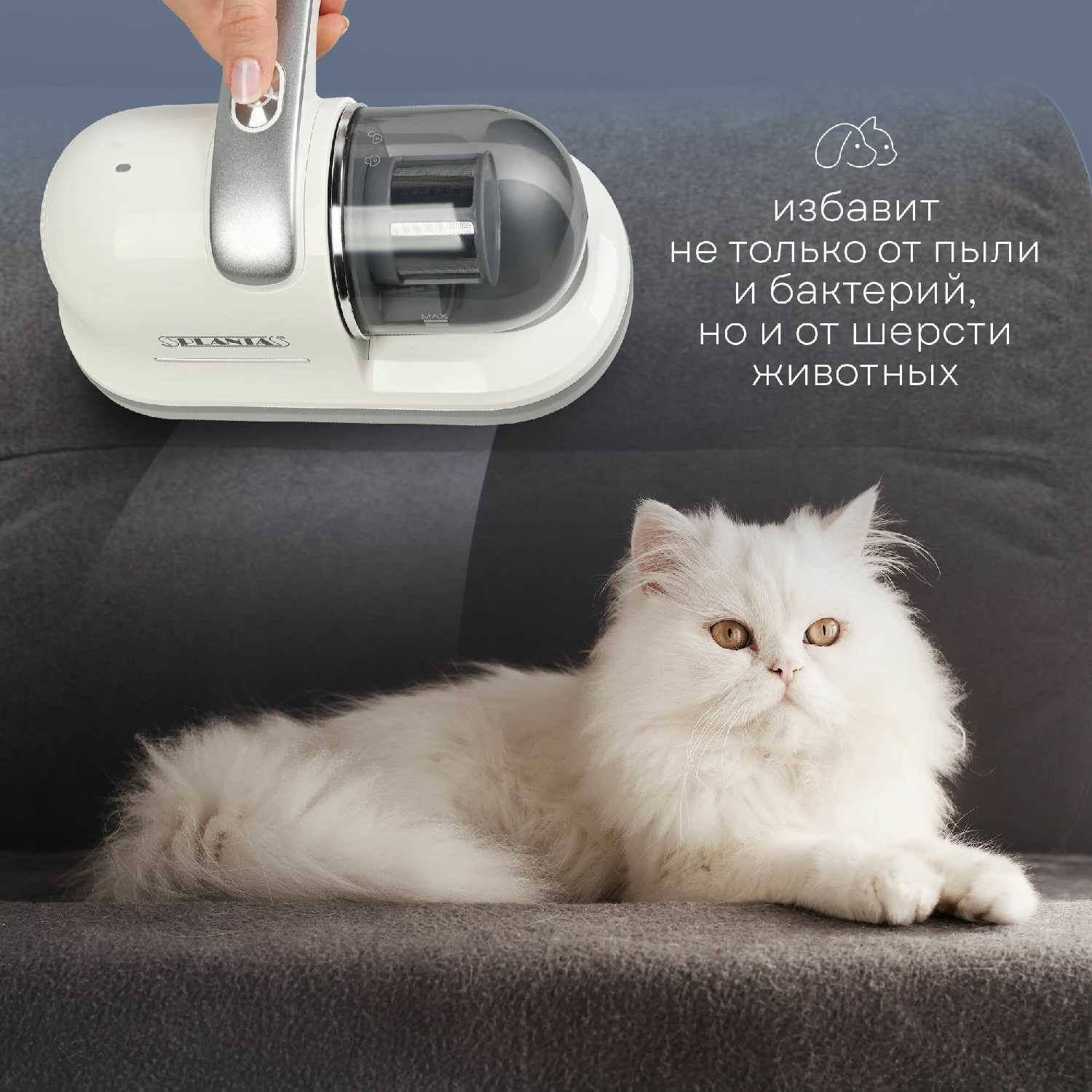 Устройство эффективно удаляет шерсть кошек и собак с мягкой мебели, ковров, постельного белья и труднодоступных мест благодаря мощному всасыванию. Пользователи отмечают, что он собирает даже мелкие волоски, незаметные глазу, что особенно актуально для семей с питомцами. Встроенный НЕРА-фильтр задерживает аллергены, а УФ-лампа дополнительно обеззараживает поверхности, снижая риски для здоровья детей. -