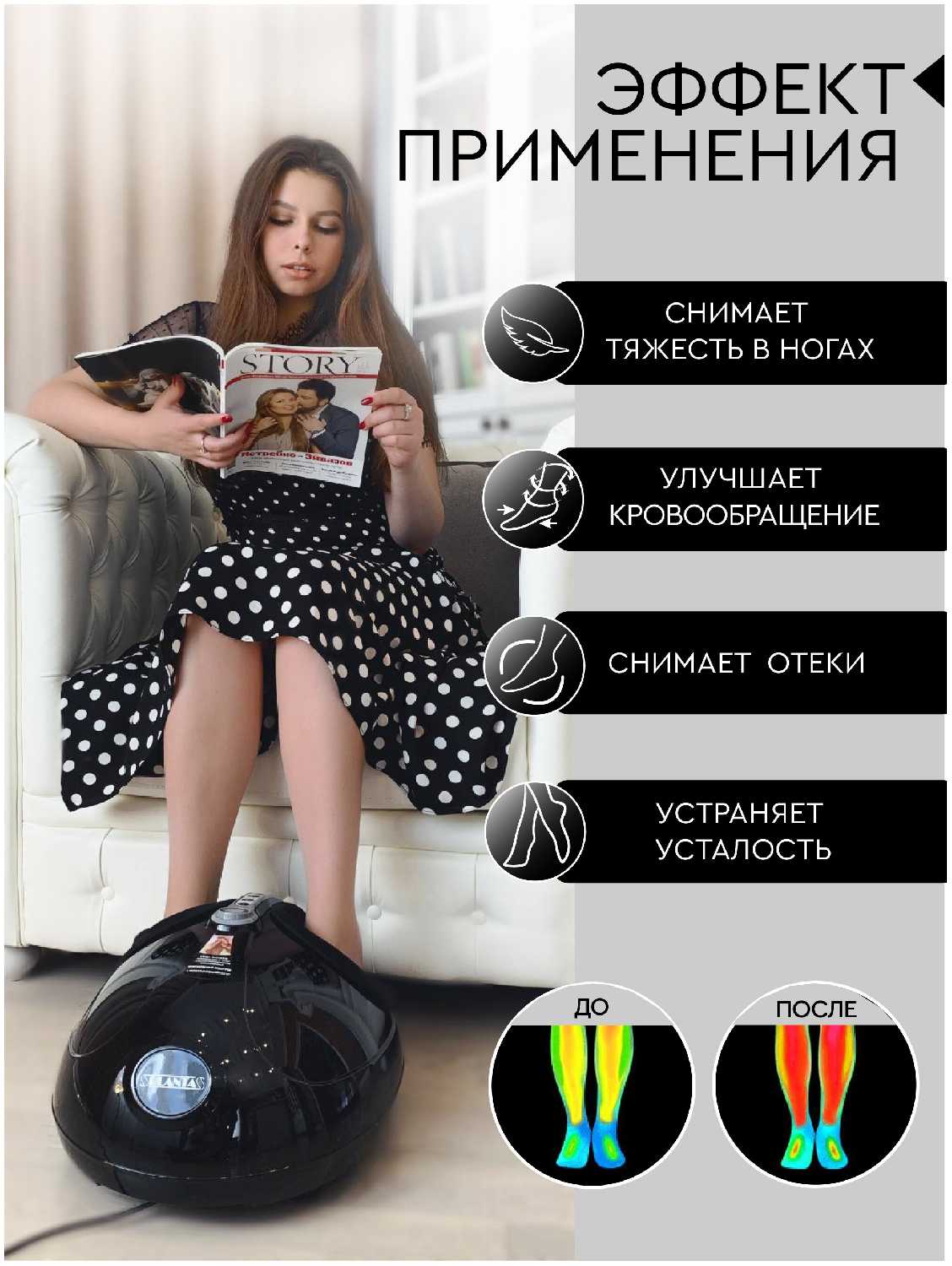- Пользователи отмечают, что после 15–30 минут использования исчезает усталость и отечность.