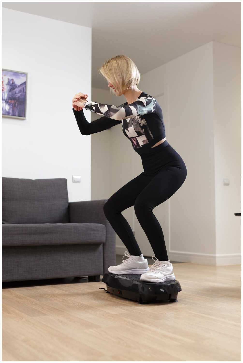 в инфобуклете описано 15 упражнений,но я думаю каждый сам для себя придумает ещё минимум 15 позиций)купила ради разгона лимфы и чтоб мышцы потрясти,расслабить.ноги гудят после работы ,сели на пол на жопку,закинули ноги на платформу и поехали,можно менять положение и трясёт разные стороны икроножной мышцы,это просто кайф)сели на диван,а ноги на платформе,трясёт вообще по другому.болит поясница,в буклете написано сесть попой на платформу-тоже норм,но если встать на платформу и опереться на что нибудь руками(я на диван) буквой Г,то отлично расслабляет поясницу.даже за это уже много+++просто отличная штуковина,за неделю отработала уже свою стоимость(сравниваю с лимфодренажным массажем у массажиста))