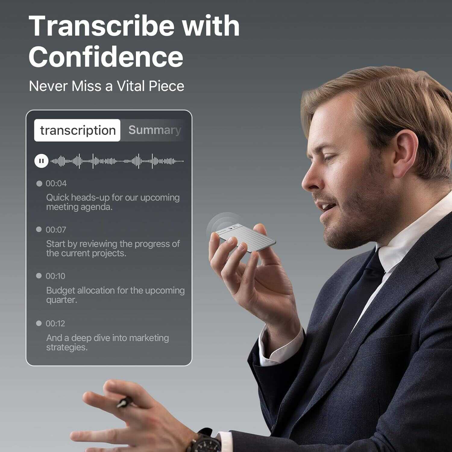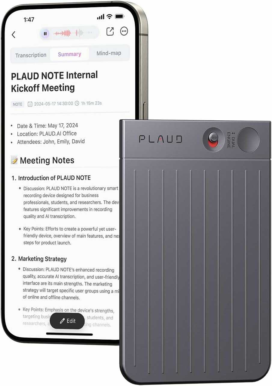 - + Очень Крутая штука, хорошо распознает текст, распознает голоса участников (понимает количество человек), отлично структурирует, делает выводы и акцентирует внимание на неуточненных вопросах. Удобно носить на iPhone, на android не знаю есть сзади магнит или нет, но если что в комплекте есть магнитная наклейка.