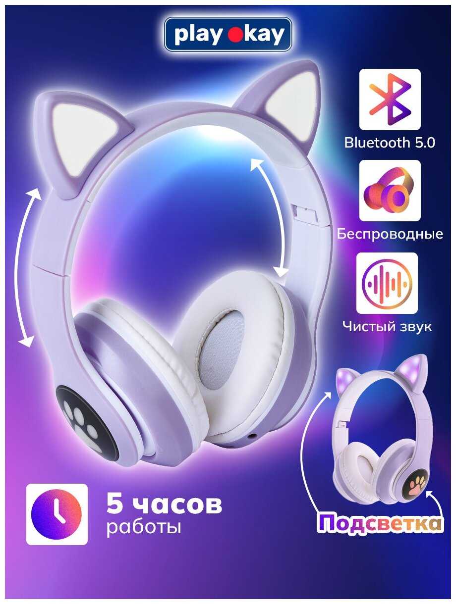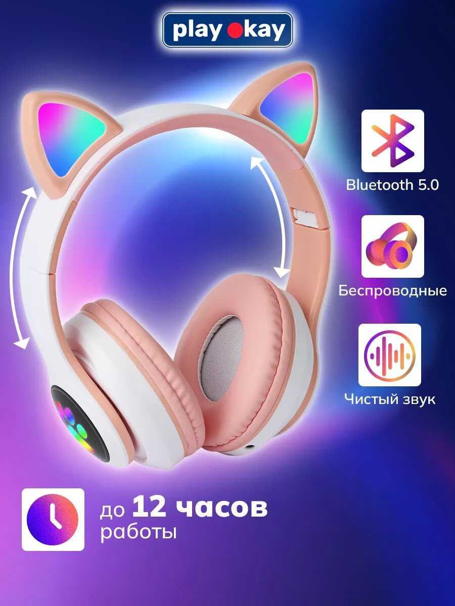 Характеристи play okay Беспроводные наушники детские с ушками и шумоподавлением