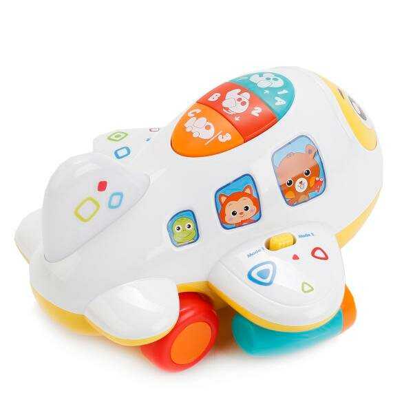 Мелодии 1ого режима длятся около 15 сек, есть одна подлиннее (успеть перелить кипяток из чайника хватит). Далее наступает пауза, малыш успевает осознать, что стало тихо. Самолетик включается и спрашивает: любишь ли ты отпуск и проигрывает еще одну мелодию. Мелодии к кнопкам не привязаны - играют все поочередно. Всего штук 6. Можно выключить полностью - от случайных нажатий. - - Картинки на окошках приклеены - как подрастет нужно будет бдить, чтобы не сьел.