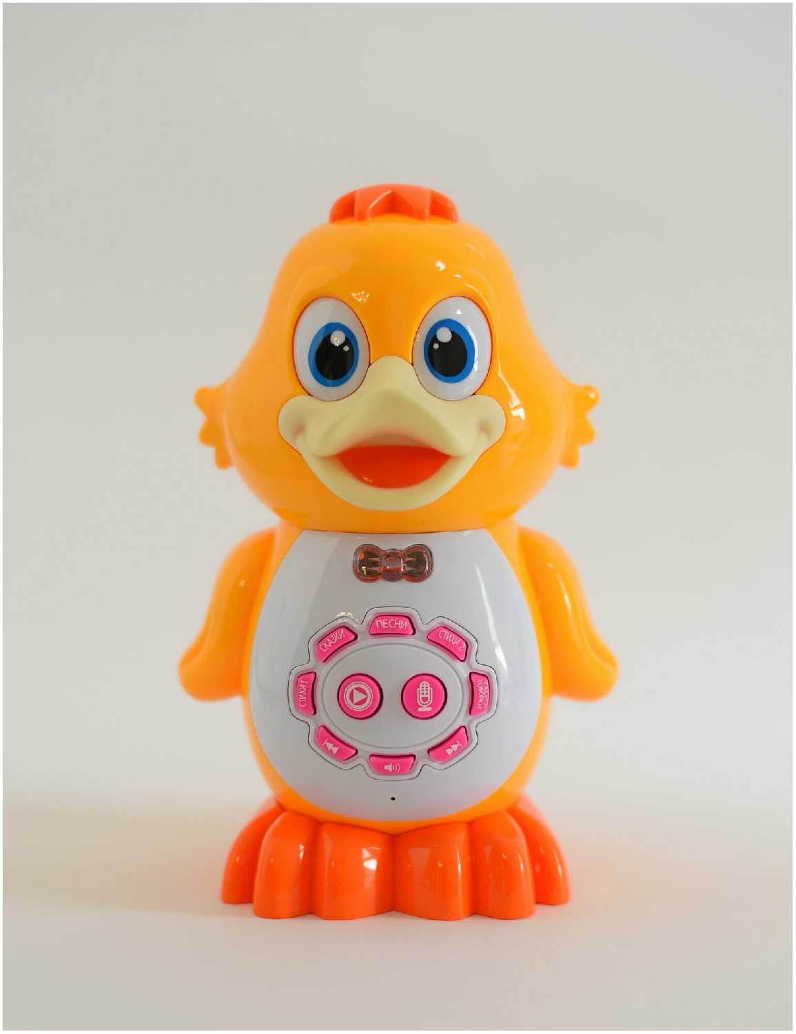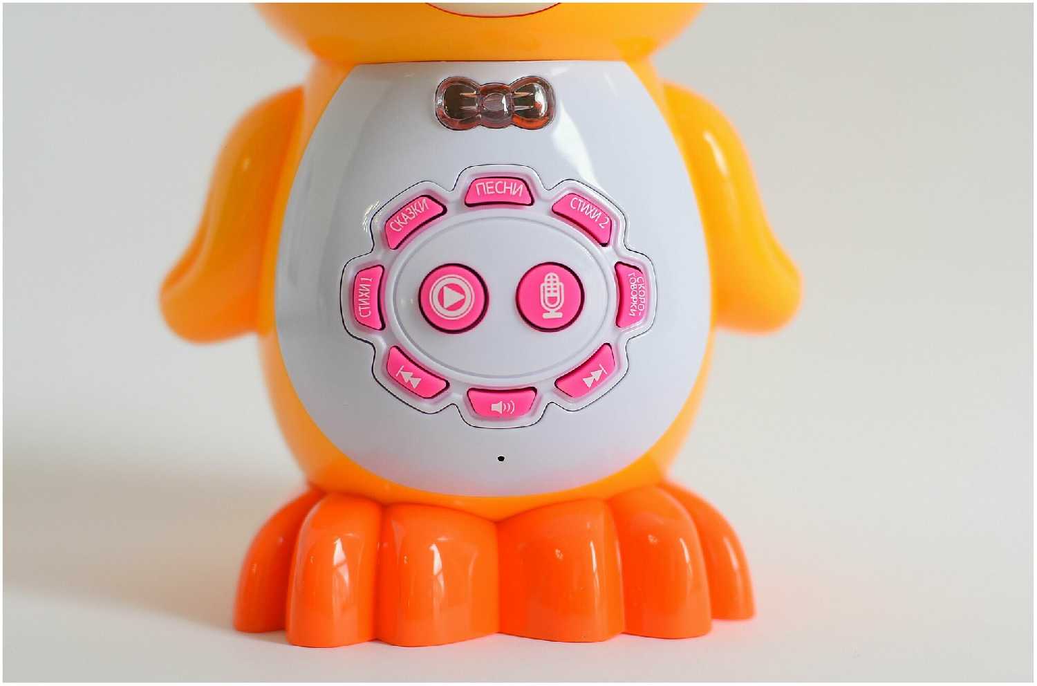 - + Осень яркая и интересная игрушка. Привлекает цветами и доброй улыбкой уже сразу, как только распоковала. Интересный не избитый подход и функционал. Песни и весёлые и спокойные тоже раньше не слышала их. Манера рассказывает сказок разными голосами и сами сказки тоже очень привлекают. Клюв светится разными цветами и доча 5 месяцев так и тянется ручками потрогать и попробовать клюв и всю игрушку. Кнопки удобные разделены по смыслу. Песни, сказки, стихи, скороговорки и также функция записи голоса в микрофон и кнопка прослушивания. Дочка оценила мамино пение. Думаю когда начнёт понимать куда нужно нажимать ещё больше будет её радовать.