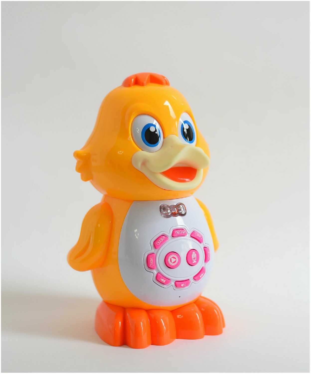 - + Хорошая игрушка,интересные,а главное поучительные,сказки и стишки. Ребёнку нравится клюв-светится яркими цветами.