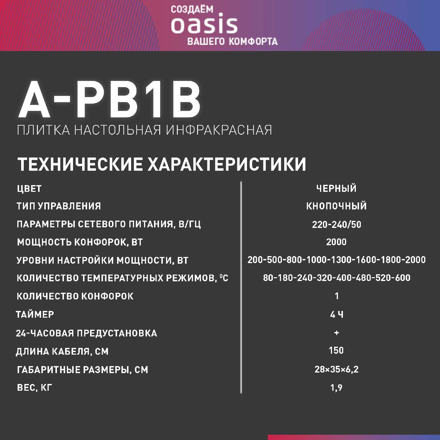 Характеристики:- материал рабочей поверхности: стеклокерамика