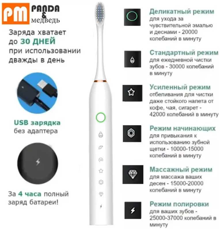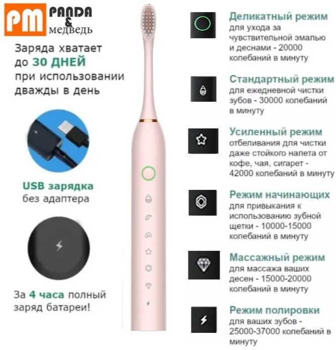 Отзывы о Электрическая зубная щетка TOOTHBRUSH Panda & Медведь звуковая