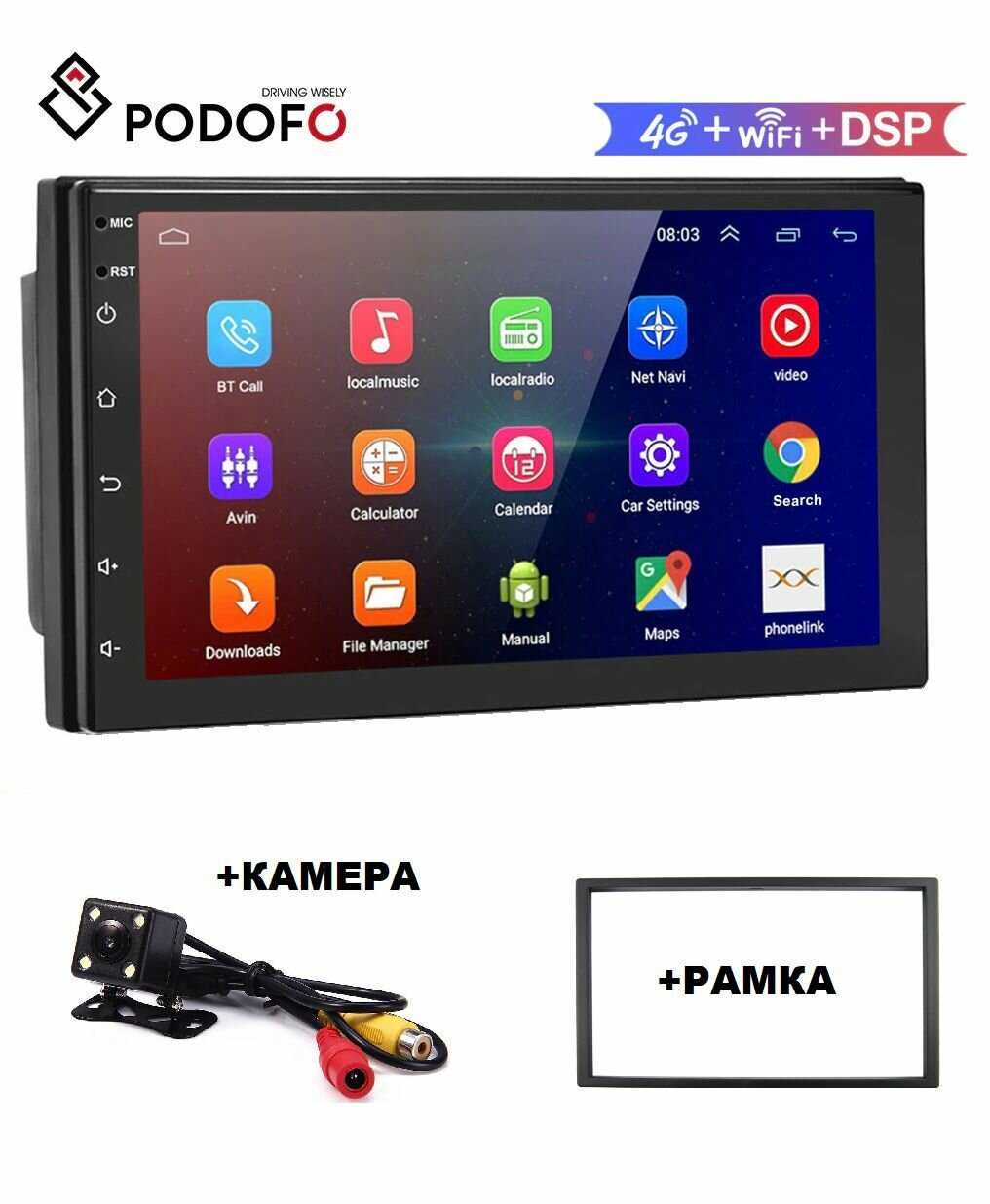 Магнитола Штекер питания GPS антенна 2 USB провода CAM VIN 2 кронштейна AUX выходы Камера заднего вида Рамка 2DIN