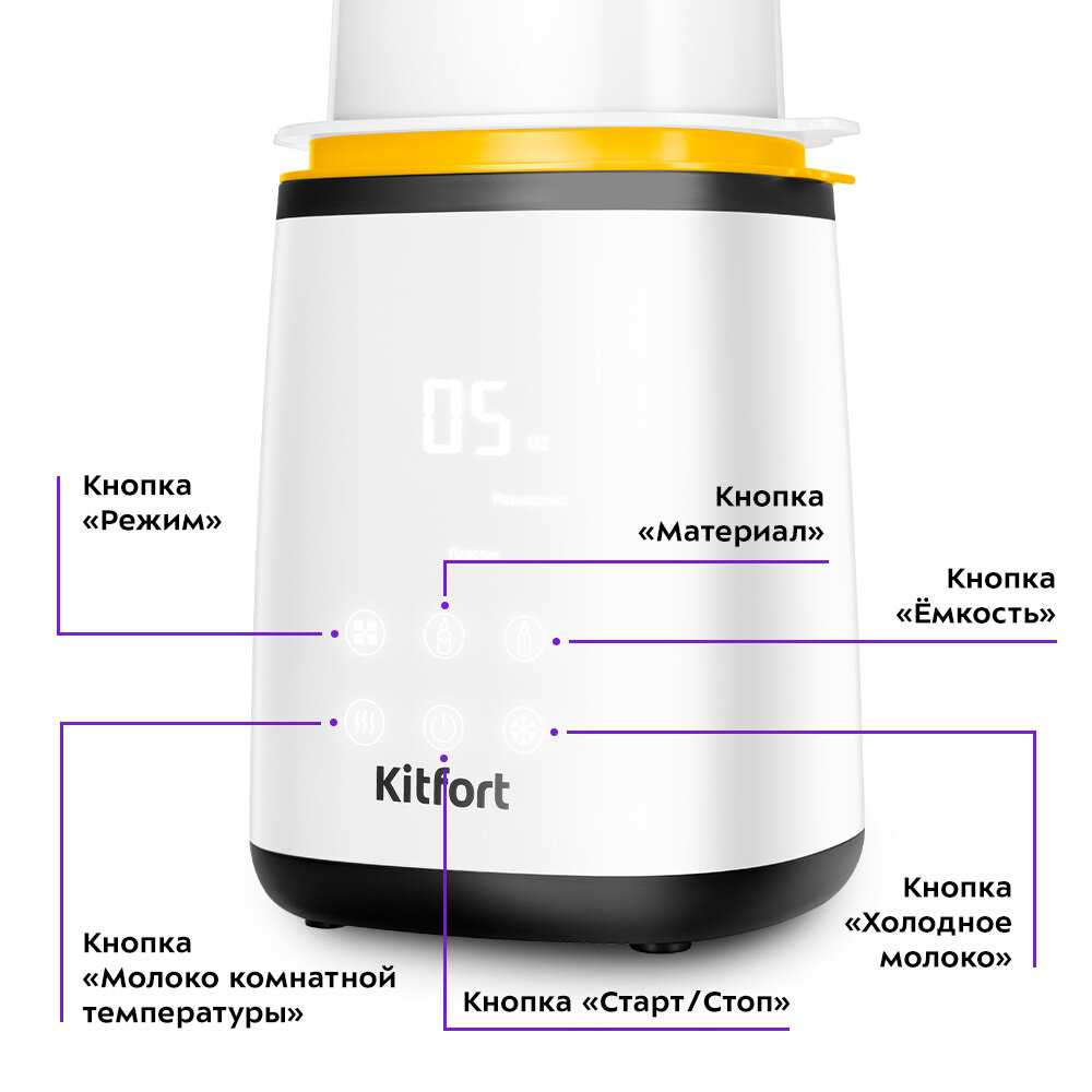 7.9/10 баллов 7.9/10 балловKitfort KT-23022 место из 48 Характеристики:- (на 2 бутылочки) способ подогрева: с водой подходит для бутылочек 400 мл температура нагрева воды 40-100 °C лоток для извлечения бутылочек в комплекте электронное управление