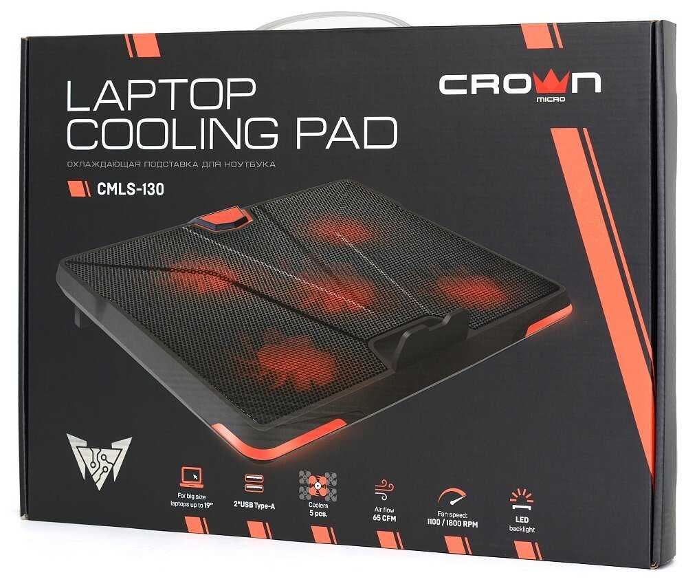 CBR CLP 15502 до 15,6, 355x255x30 мм, с охлаждением, 2xUSB, вентиляторы 2х125 мм, 50 CFM, LED-подсветка