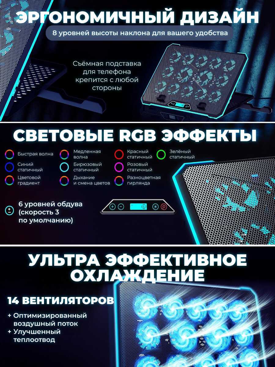 SVETODAR116 Подставка для охлаждения ноутбука 15-17 дюймов