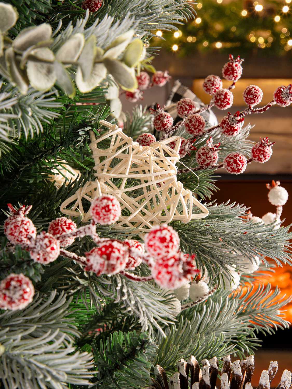 - + Очень Красивая ёлка. Приехала уже нарядная с бантами, плюшевыми шарами, ветвями различных ягод. Нам очень понравилась.