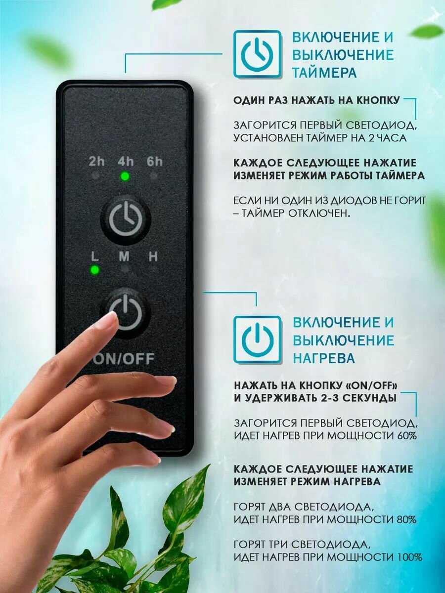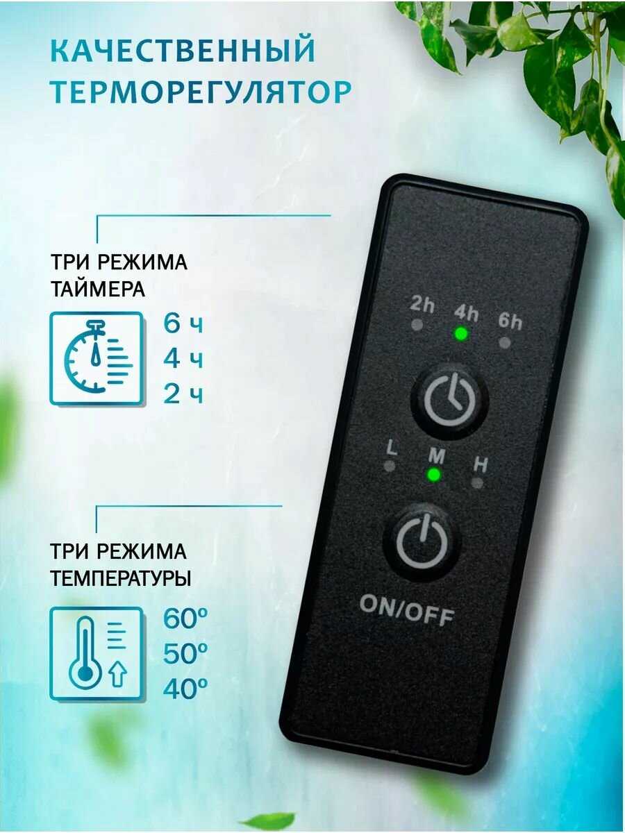 | Особенности : | кнопка включения/выключения, с таймером, терморегулятор |