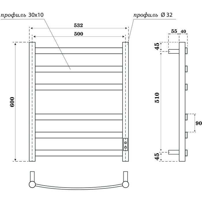 Отзывы о Полотенцесушитель электрический Point Антея [P6] [500x600]