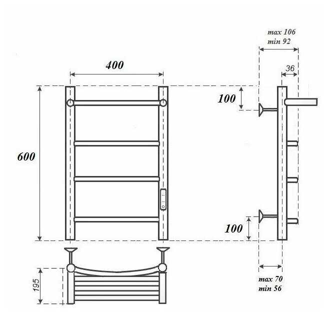Отзывы о Полотенцесушитель электрический Point PN04846P П3 400x600 с полкой, диммер справа, хром