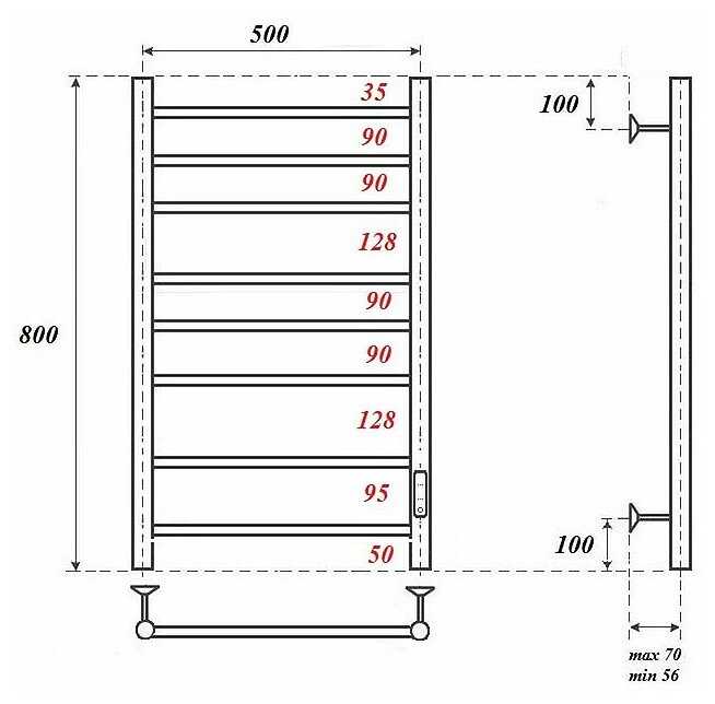 - + Хорошо греет, стильный, много перекладин, несколько режимов температуры и таймер, простой монтаж, шнур можно подключить с любой стороны (снизу)