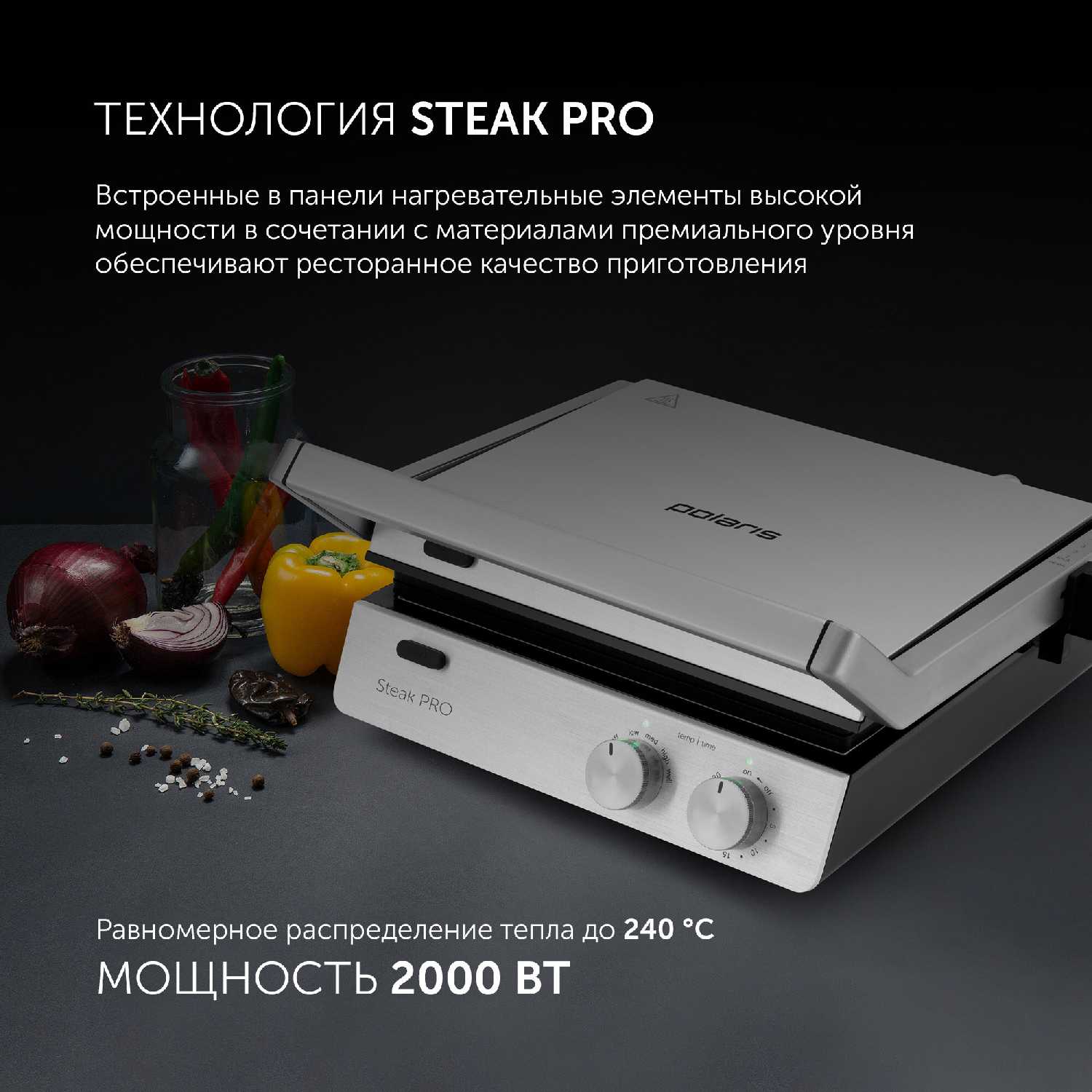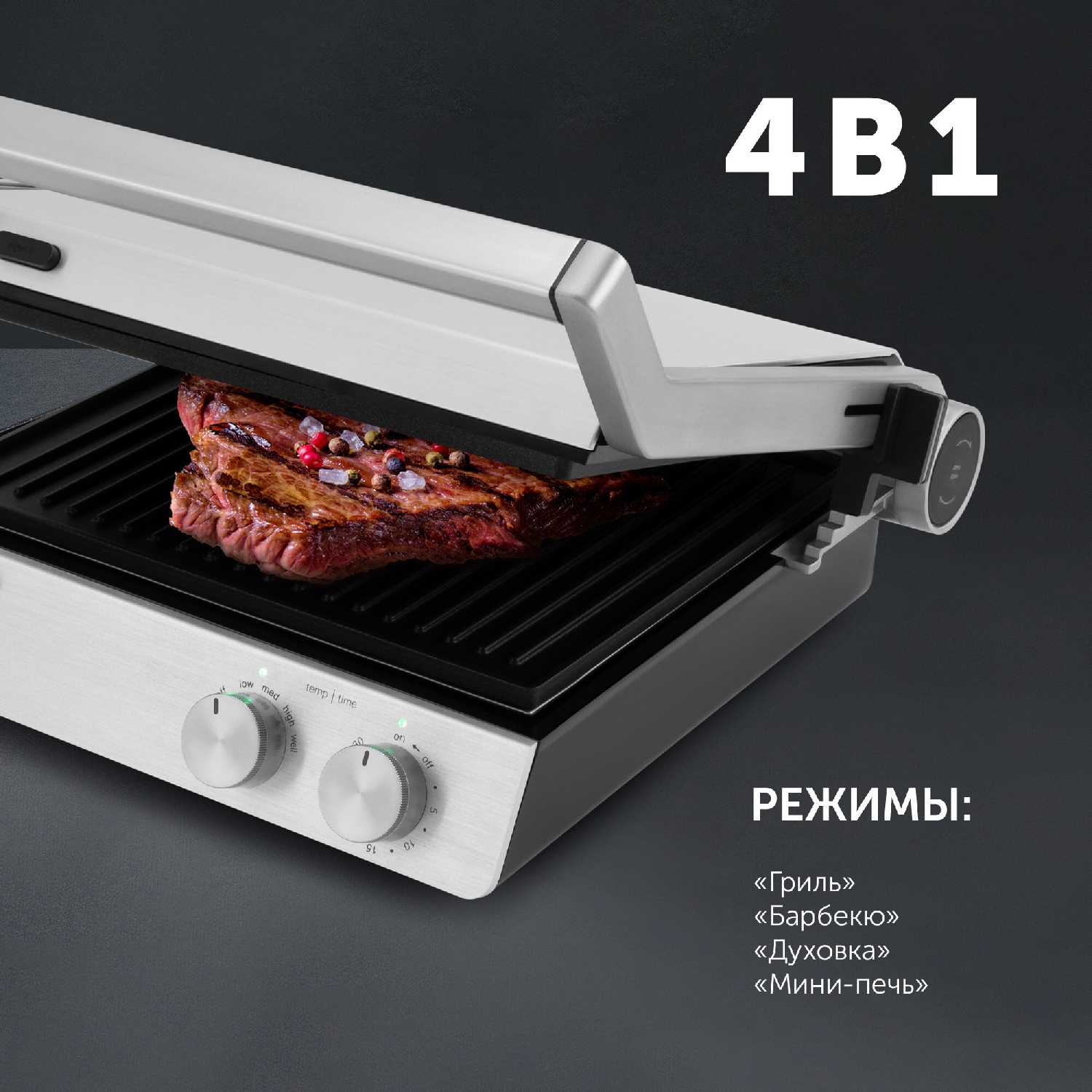 - Равномерная прожарка с 4 степенями для стейков:
