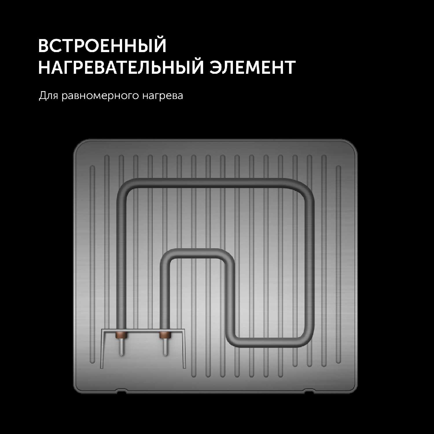 - Равномерное распределение тепла по всей панели предотвращает подгорание в центре, улучшая качество прожарки овощей и мяса.