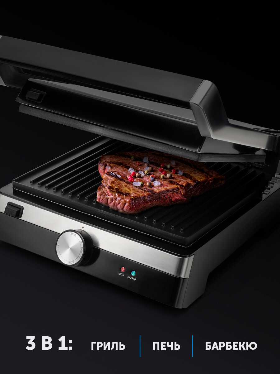 - + Гриль радует своей мощностью в 2,2 кВт, что позволяет быстро справляться с готовкой. Кабель сделан достаточно толстым, так что во время использования ни вилка, ни розетка не нагреваются. После выключения устройство остывает не спеша, что удобно. Съёмные панели моются без проблем, их легко снять и помыть. Есть встроенный таймер, который помогает контролировать процесс. Поверхность нагревается равномерно, и на нём помещается два стейка одновременно. Верхняя и нижняя панели взаимозаменяемые, что добавляет гибкости в использовании. Для точной прожарки стоит взять отдельный кухонный термометр с щупом.