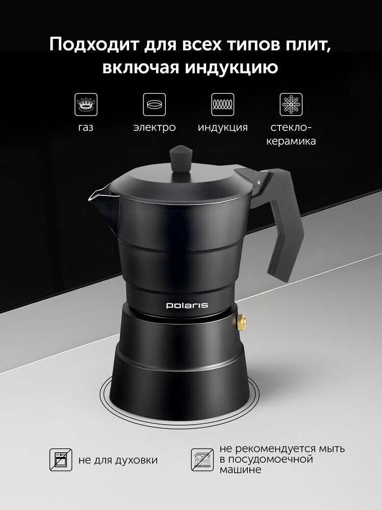 Отзывы о Гейзерная кофеварка Polaris Calido-6C [300 мл, для индукции, алюминиевая]