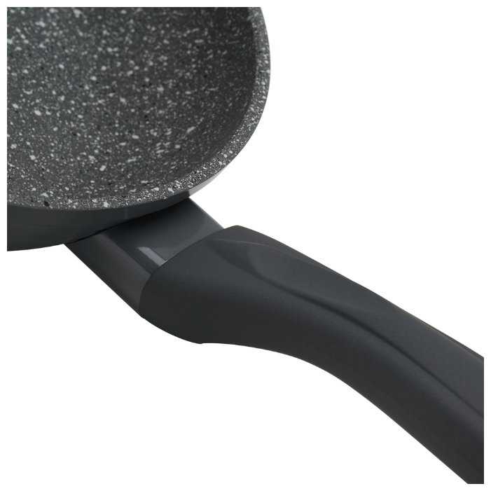 Понравился размер, оптимальный для жарки, тушения на семью 3 человека. Ручка в руке удобно лежит, не нагревается, не скользит. Порадовала.