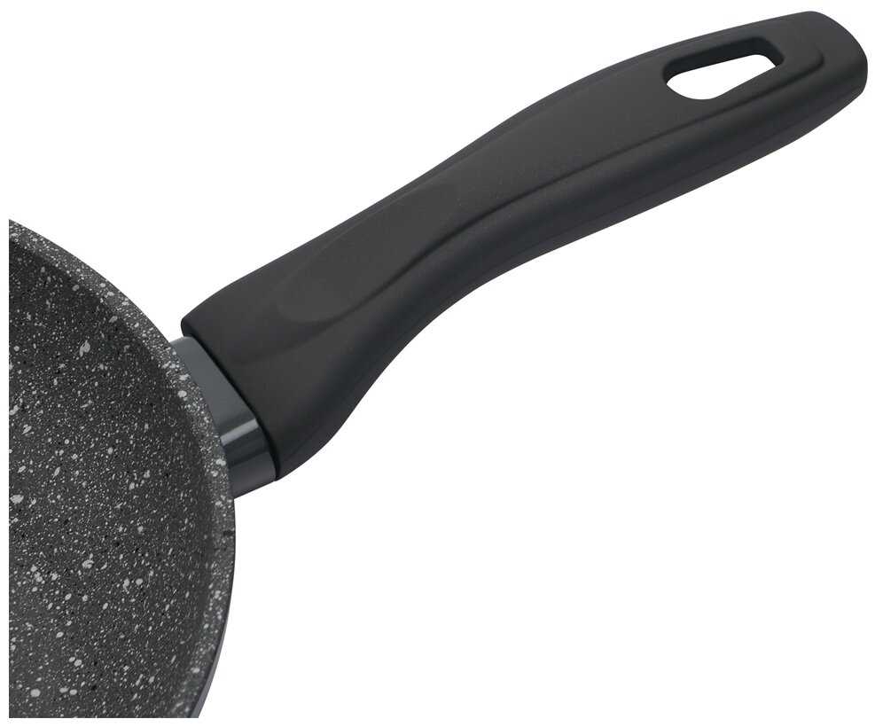 Понравился размер, оптимальный для жарки, тушения на семью 3 человека. Ручка в руке удобно лежит, не нагревается, не скользит. Порадовала.