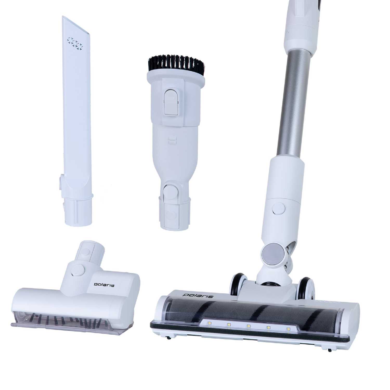 - + Плюсы: пылесос поставлялся в заводской коробке, легко собирается и прост в эксплуатации; удобная вертикальная подставка для хранения всех насадок из комплекта; на режимах 1 и 2 мощности хватает для уборки пола без коврового покрытия; отлично справляется с пылью, волосами, песком и мелким мусором; продолжительность работы полностью соответствует заявленному времени; корпус выполнен из качественного пластика; труба сгибается и фиксируется одной кнопкой, а для фиксации в прямом положении достаточно довести трубу до выпрямления; пылесос лёгкий, кнопки включения и переключения режимов расположены удобно; в модели присутствуют все необходимые характеристики: вертикальная стойка, съёмный аккумулятор, подсветка головы, складная труба, индексация и лёгкий вес.