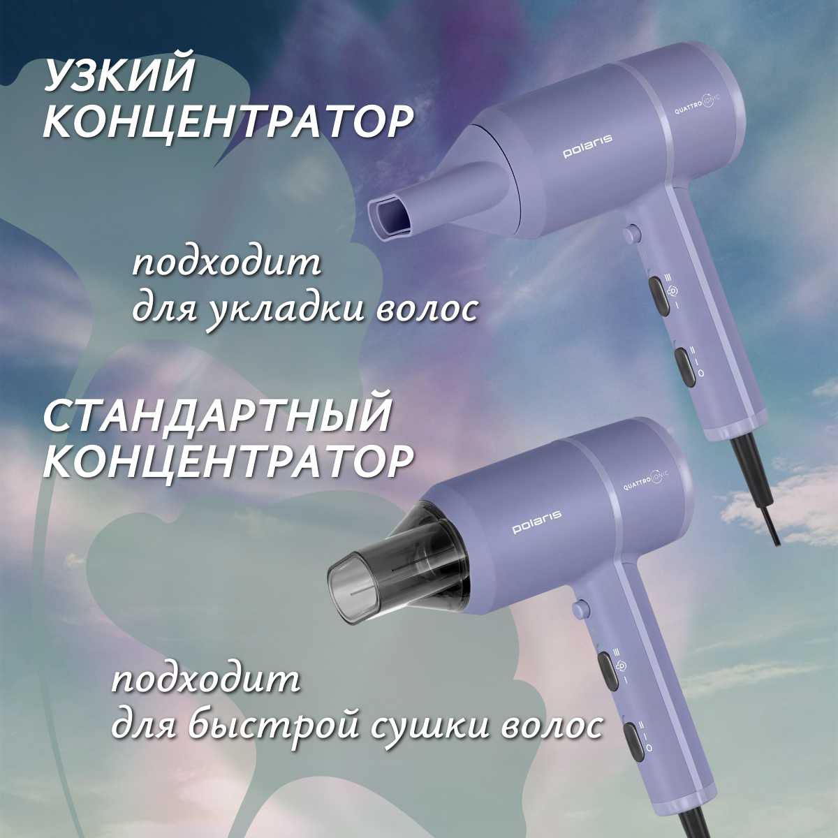 Насадки крепятся на магниты, что упрощает их смену: они надежно фиксируются, но снимаются без усилий. В комплекте обычно идет узкий концентратор для укладки и стандартный для сушки. Пользователи ценят, что насадки не нагреваются даже при длительном использовании. -