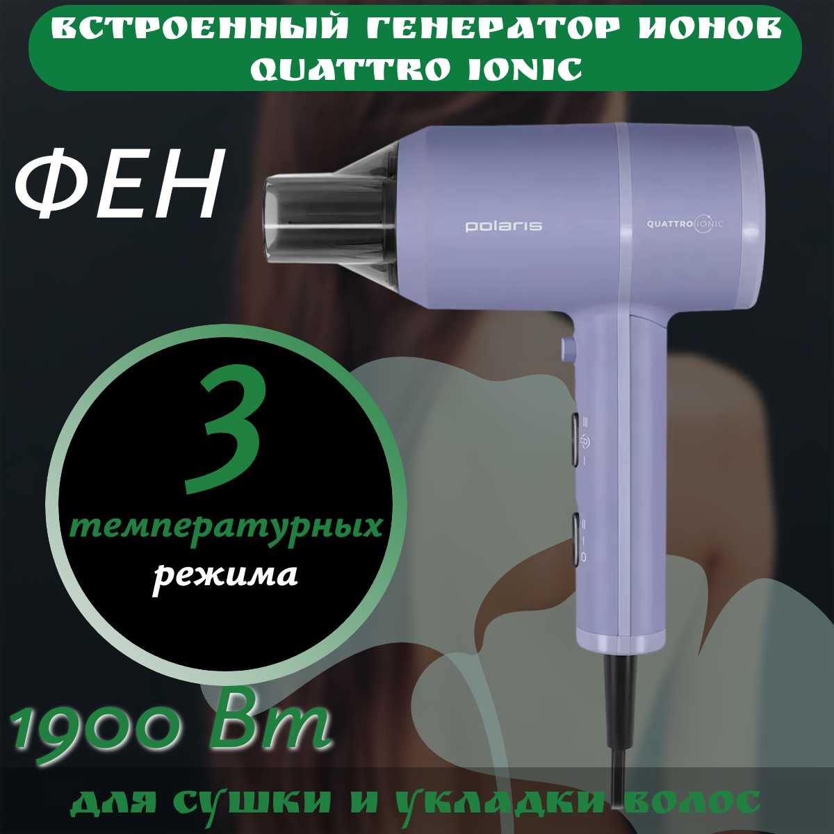 2 - мощная ионизация. Для меня это важно, тк волосы очень тонкие. После сушки феном с ионизацией волосы дольше остаются чистыми, не электризуются, блестят, на ощупь нежные и шелковистые. Разница с естественной сушкой огромная! Так что ионизация здесь действительно ощущается.