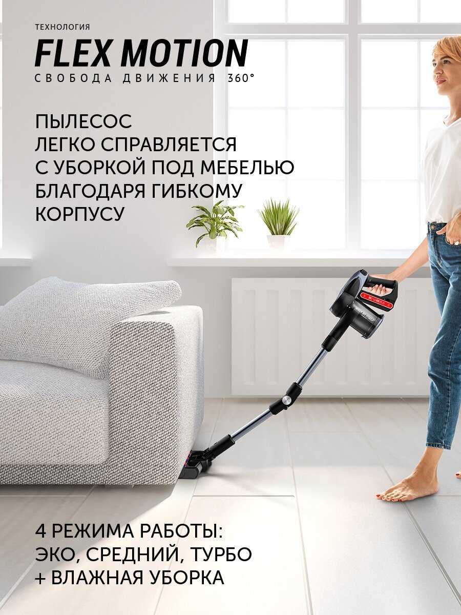 Гибкая трубка позволяет пылесосить под мебелью, не нагибаясь. Например, под кроватями или низкими шкафами. Для активации функции достаточно нажать кнопку на рукоятке и согнуть трубку под нужным углом. Пользователи подчеркивают, что это снижает нагрузку на спину и упрощает уборку в труднодоступных местах. -
