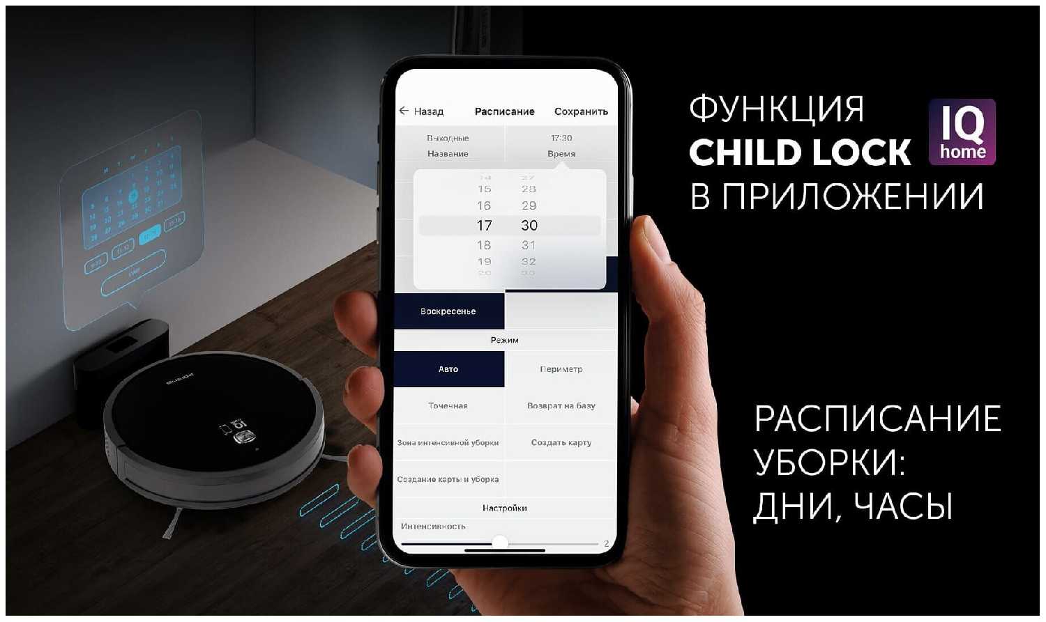 В приложении можно установить расписание уборки по дням недели, есть функция влажной уборки.