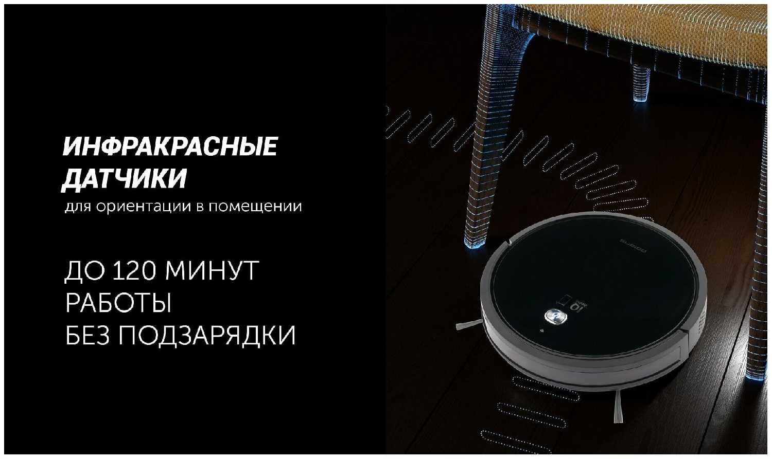 - Оптические и инфракрасные датчики замедляют движение перед препятствиями, минимизируя удары о мебель и стены.