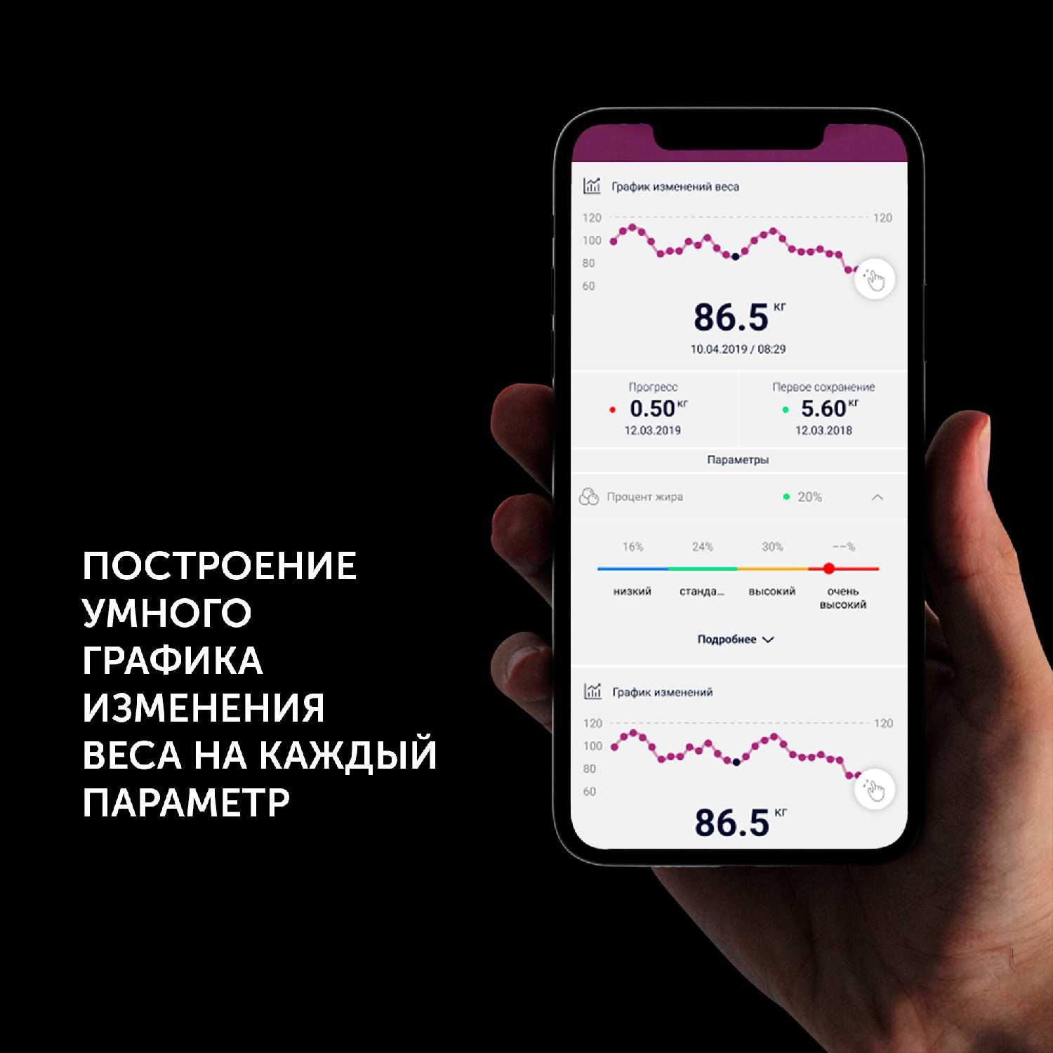 Подробный анализ тела, начиная от сколько воды в организме,заканчивая костной массой. Пользуюсь пару недель, трудностей не возникало
