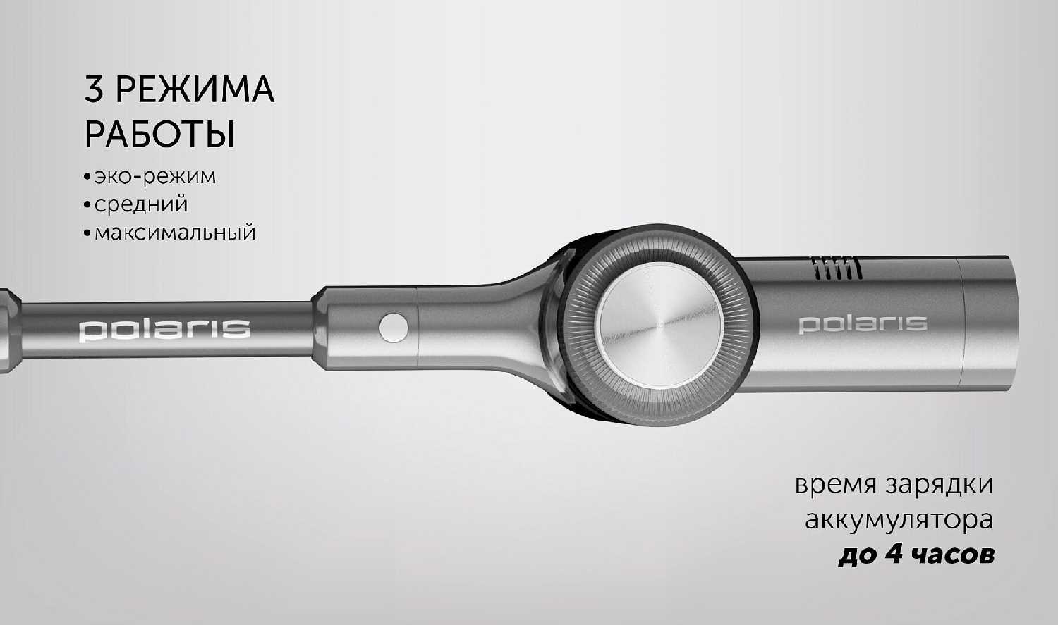 В целом, Polaris – это не просто инструмент для уборки, это интеллектуальное решение, сочетающее в себе высокую эффективность, долговечность и удобство использования.Беспроводной пылесос Polaris поражает не только своими технологическими характеристиками, но и стильным дизайном. Эргономичная рукоятка и минималистичный внешний вид делают его не только функциональным, но и эстетичным аксессуаром для дома. Интегрированные светодиодные индикаторы заряда и режима работы добавляют удобства в использовании, предоставляя ясную информацию о статусе устройства.