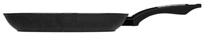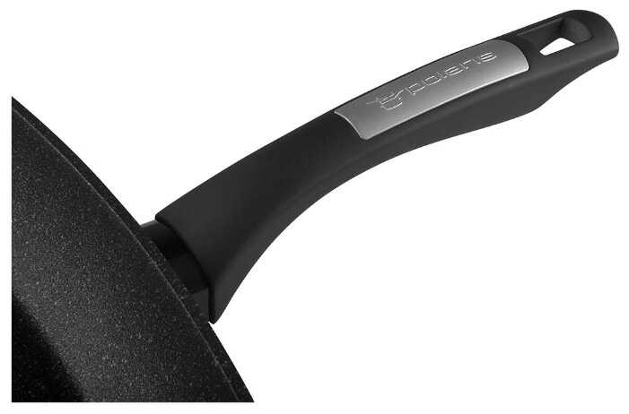Ручка с мягким покрытием, в руке приятно держать) Сковорода достаточно большая и вместительная , на 2 приличных стейка хватает как минимум. Отдельный плюс за качество покрытия, мясо не липнет хоть много масла добавляй хоть каплю . Рекомендую)