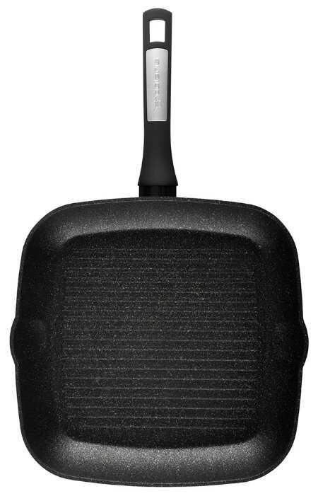 - + Работает с индукцией. На продуктах оставляет красивые полосочки. Ничего не пригорает.