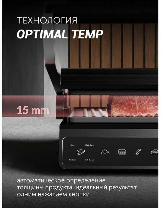 Да, благодаря функции Optimal Temp, которая автоматически подстраивает температуру под толщину продукта, мясо остается сочным внутри даже при образовании румяной корочки. Например, куриные грудки и стейки из говядины, по отзывам, получаются нежными без пересушивания, особенно при использовании маринадов. -