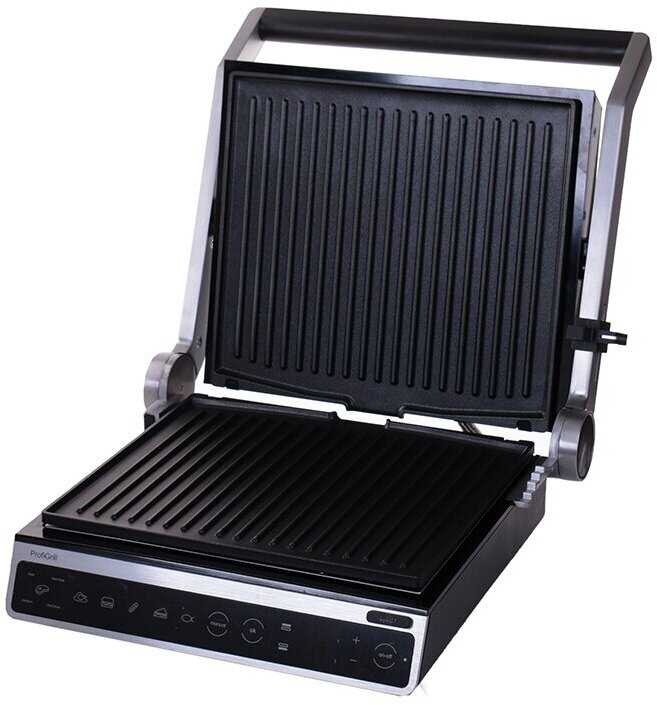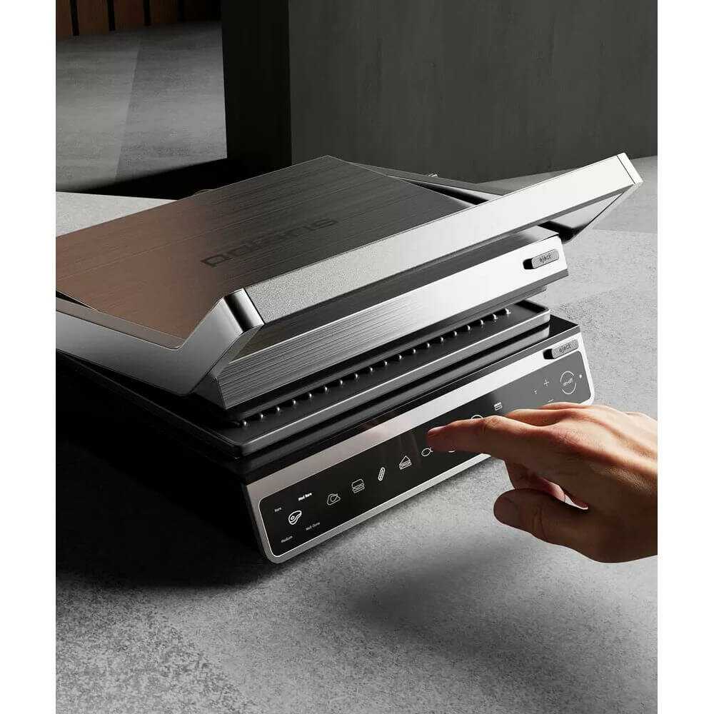 Технические особенности и их влияние на опыт:Мощность 2000 Вт обеспечивает быстрый нагрев (3–5 минут), но при загрузке большого объёма продуктов температура падает, что критично для прожарки. Независимые терморегуляторы верхней и нижней панелей позволяют экспериментировать — например, жарить мясо при 200°C, а рыбу при 160°C. Встроенный термощуп для контроля прожарки стейков стал ключевым аргументом для гурманов, однако его работа зависит от корректной калибровки датчиков. Отдельные пользователи отмечали расхождение между заявленной и реальной температурой поверхностей (погрешность до 20°C). Электронный дисплей с индикацией времени и температуры упрощает контроль, но бликует при ярком освещении. Короткий сетевой шнур (менее 1 м) ограничивает мобильность.