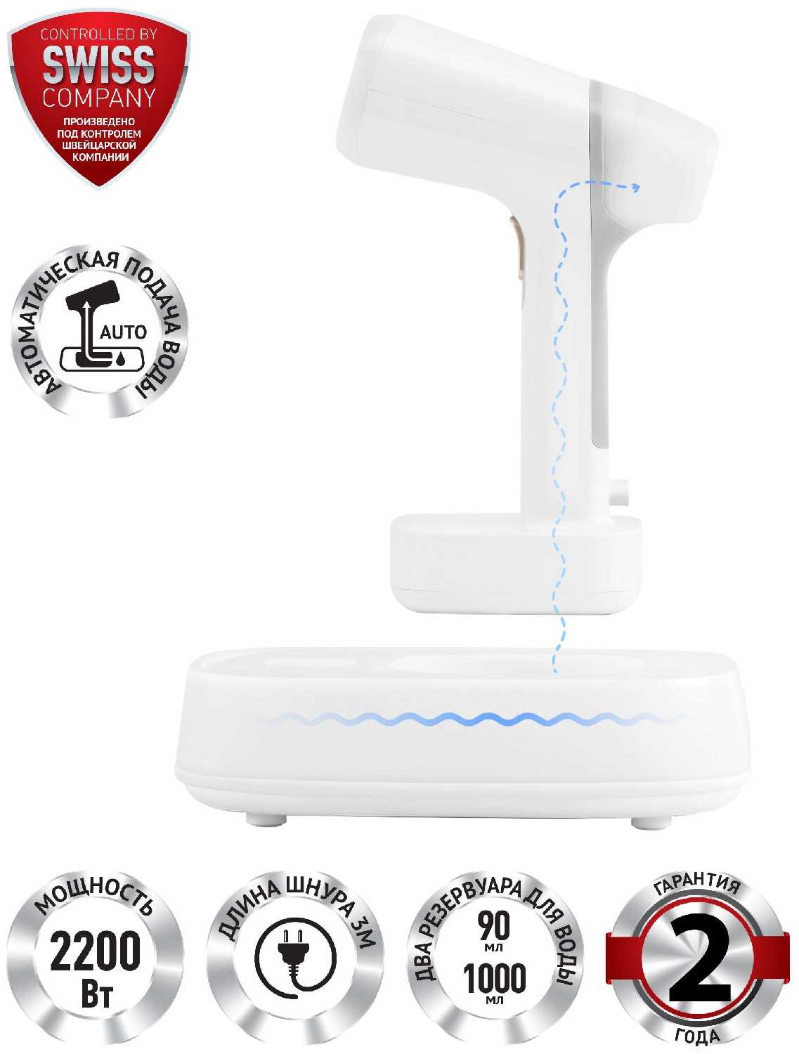 Технические параметры и их влияние на удобство Ключевым преимуществом является мощность 2200 Вт и регулируемая подача пара 25 г/мин (эко-режим) и 40 г/мин (максимум). Высокая мощность обеспечивает быстрое разглаживание, но приводит к интенсивному расходу воды: малый резервуар (90 мл) опустошается за 2.5 минуты на максимуме или за 4 минуты в эко-режиме. Система автоматической подкачки из съёмного литрового база значительно упрощает работу с большими объёмами вещей — наполнение малого резервуара занимает 10-15 секунд. Длинный шнур (3 м) повышает мобильность, однако пользователи отмечают, что кнопка подачи пара требует постоянного нажатия, что утомляет руку при длительной эксплуатации. Вибрация ручки при низком уровне воды служит полезным индикатором, но шум помпы раздражает некоторых владельцев.