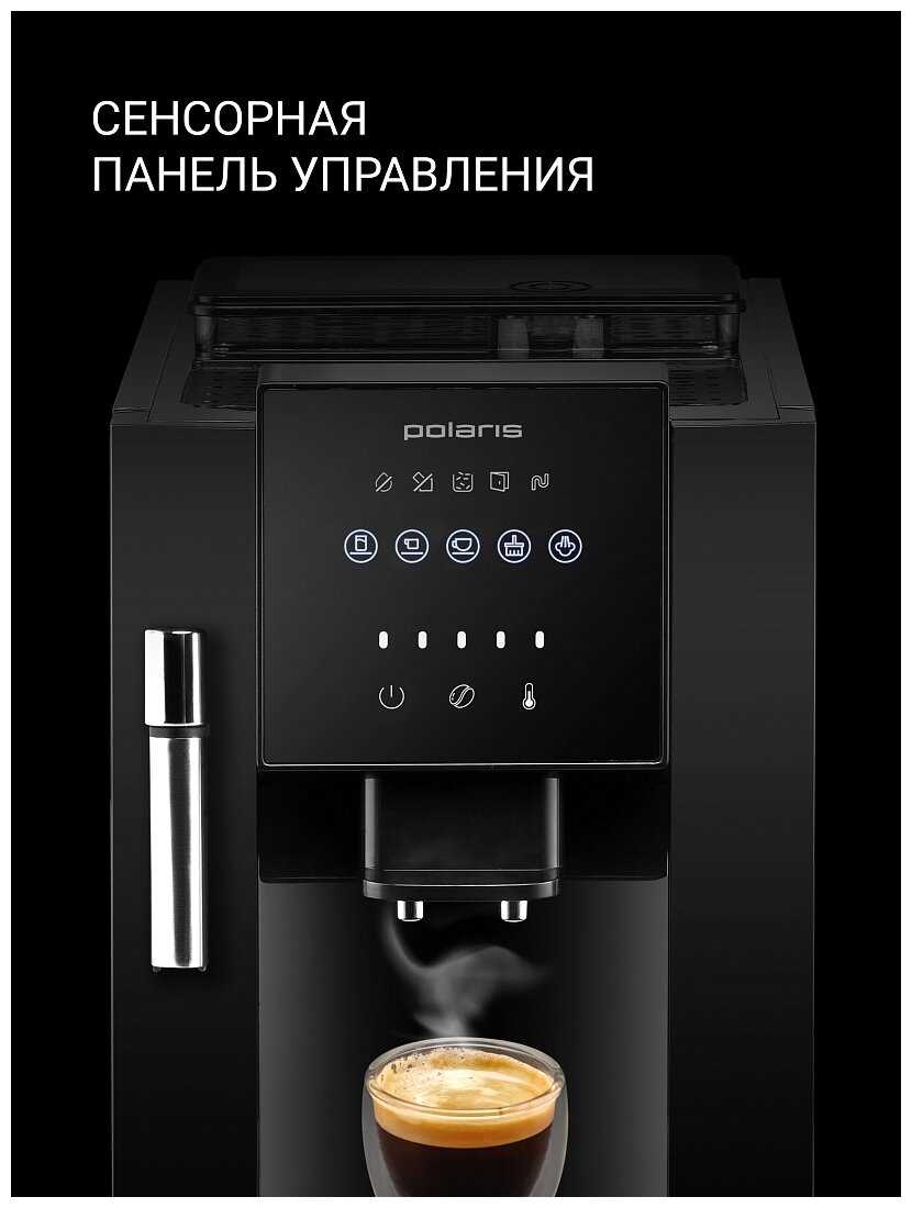 Легкость в обслуживании: Кофемашина Polaris отличается удобством в обслуживании. Легко очищается и ухаживать за ней не составляет труда. Это важно, так как обеспечивает продолжительный срок службы устройства и сохраняет его работоспособность на протяжении длительного времени.
