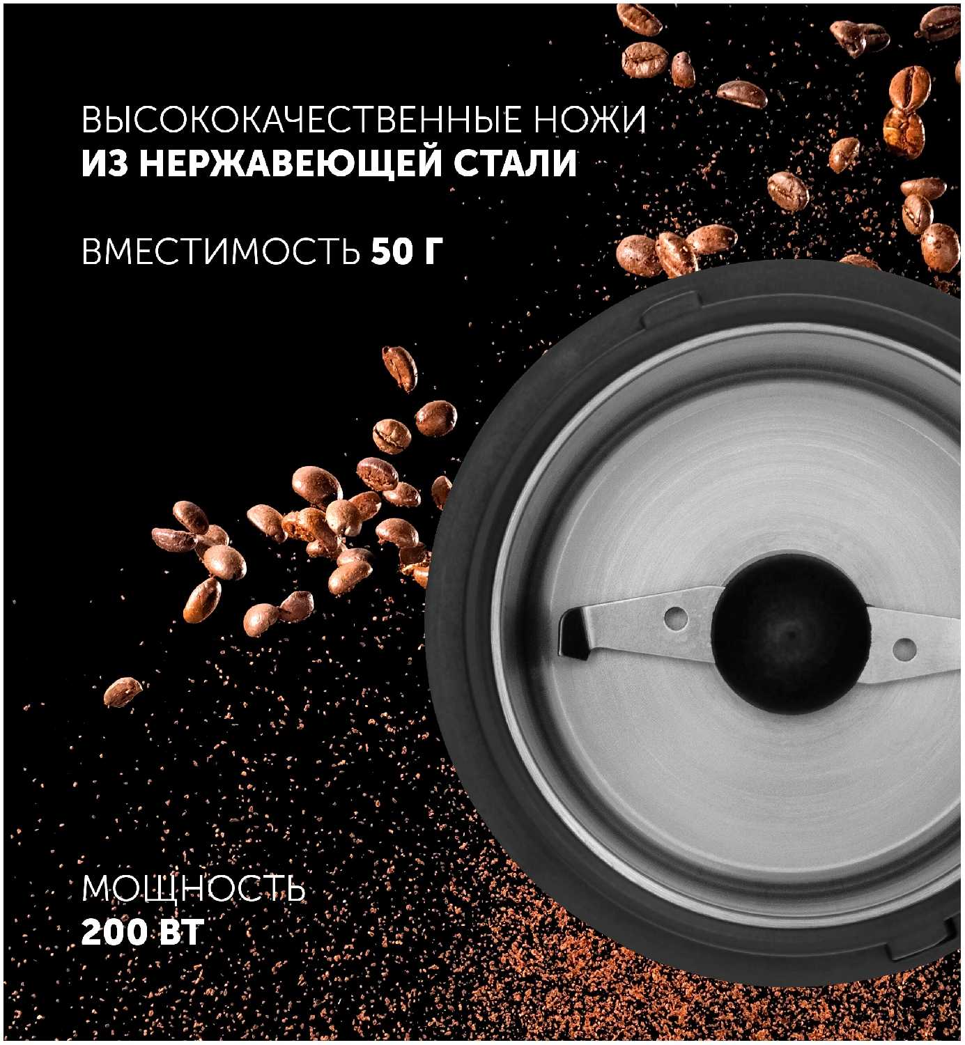 - Острые ножи из нержавеющей стали для быстрого и равномерного помола: