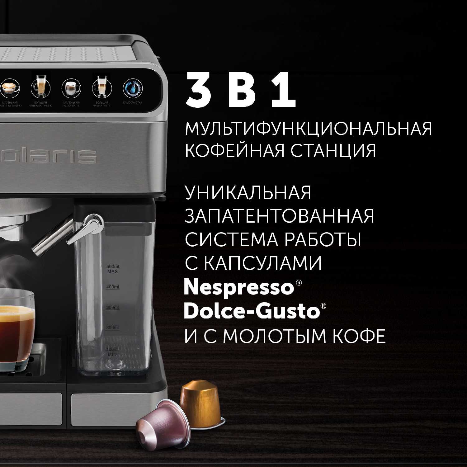 отличная кофеварка, простая в эсплотации. очень радует что, кофеварка пождерживает и капсулы и молотый кофе. капучинатор автоматический с подачей молока.