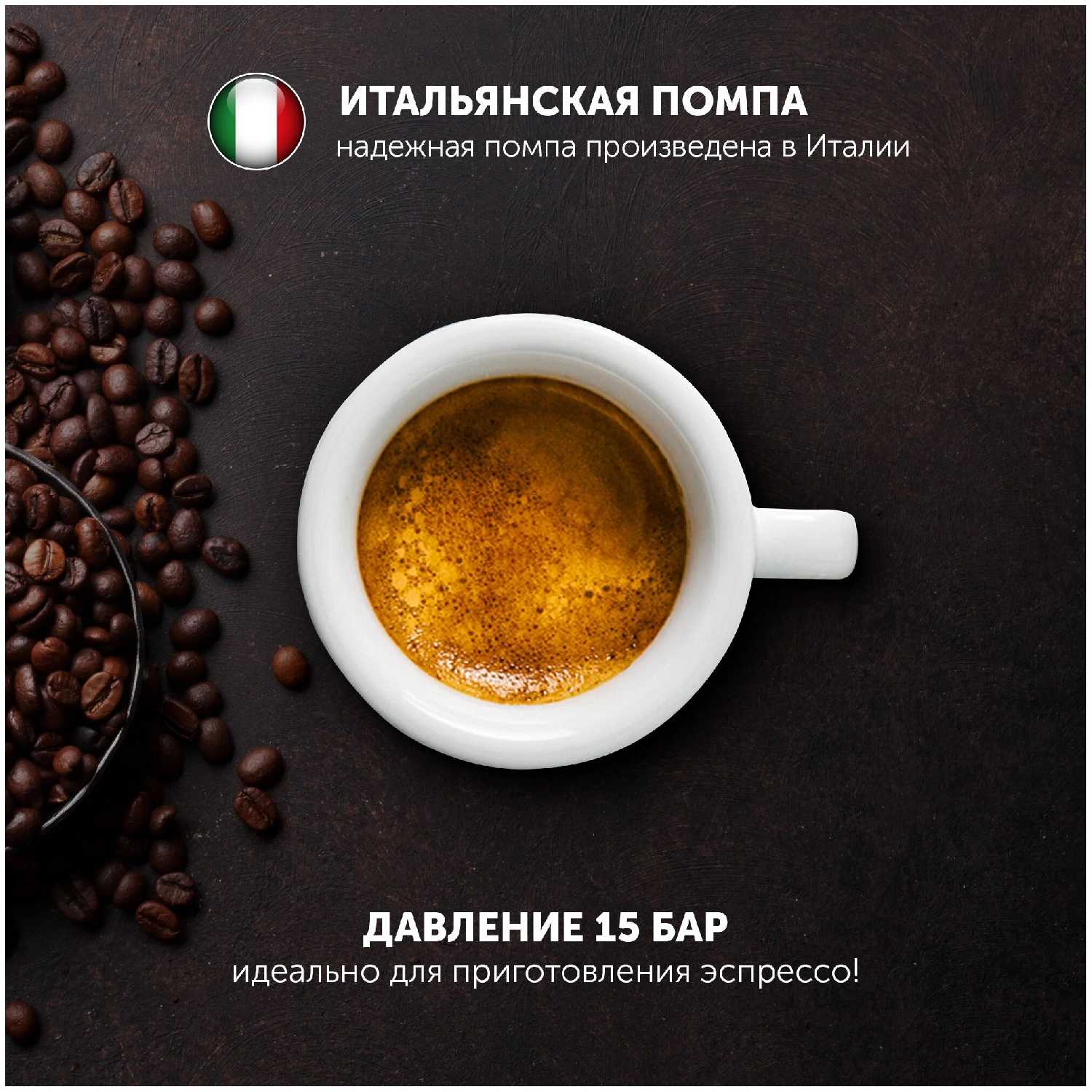 - Качество эспрессо с насыщенной пенкой (крема) благодаря давлению 15 бар: