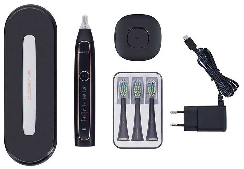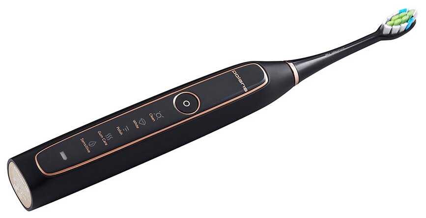 - Пять режимов (чувствительный для ежедневной чистки, отбеливание, полировка, массаж десен и интенсивный) позволяют адаптировать под разные нужды, заменяя некоторые стоматологические процедуры.