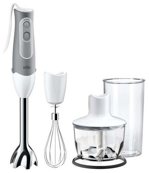Комплектация от производителя обширная : измельчитель, венчик и режущий нож в рабочей чаше (объём 750 мл),также присутствует мерный стакан (700 мл).