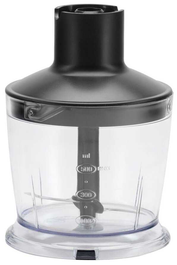 - Чаша-измельчитель (0.5 л) с острыми ножами рубит лук, зелень, орехи и даже замешивает крем-чиз.