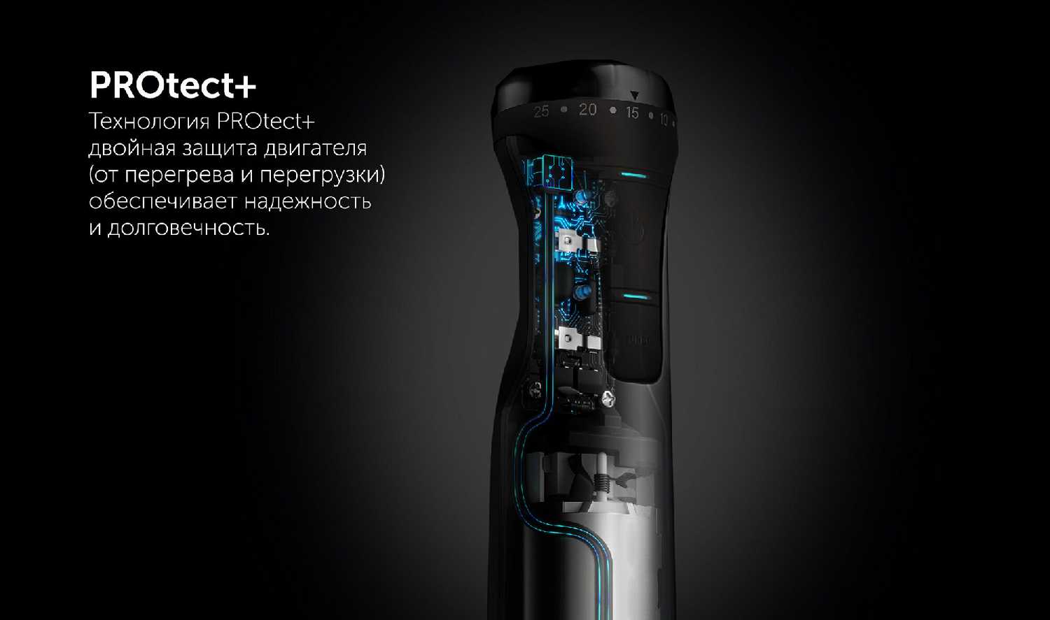 - 25 скоростей с плавной регулировкой и турбо-режимом: